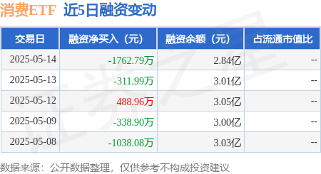 消费ETF:5月14日融券卖出7.68万股,融资融券余额2.85亿元